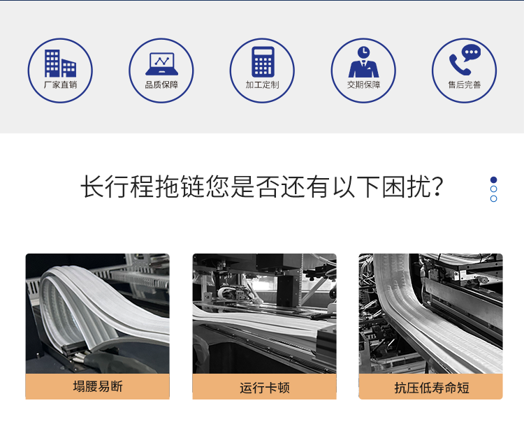 廣柔實(shí)現(xiàn)了超越5米行程的長行程重載拖鏈,該結(jié)構(gòu)長行程拖鏈,在核心支撐結(jié)構(gòu)、支撐龍骨材料配方等方面做出了重大創(chuàng)新,做到了完全進(jìn)口替代,已經(jīng)通過內(nèi)部半年超1000萬次運(yùn)行測試,并在面板頭部企業(yè)長時(shí)間穩(wěn)定使用,可以覆蓋市場 99%的長行程客戶需求。