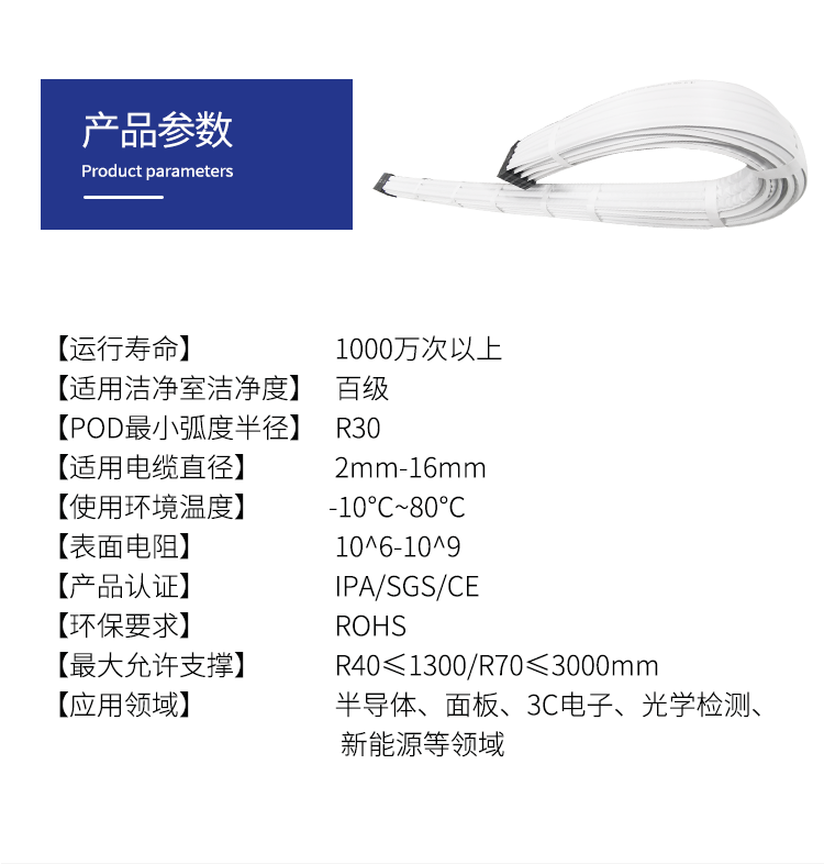 無塵室拖鏈(cleanroom cable carrier):潔凈室自動(dòng)化設(shè)備零部件
